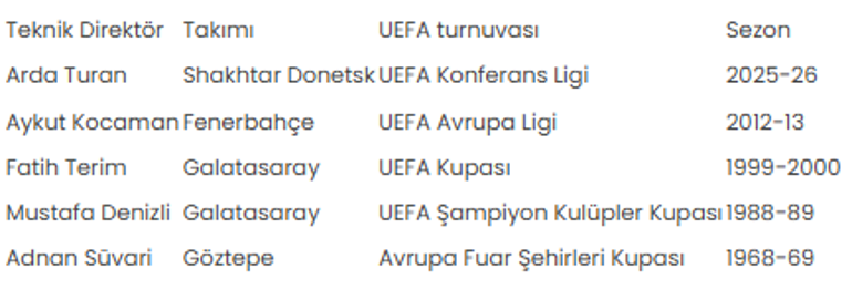 Öte yandan Arda Turan, UEFA kulüp turnuvalarında son 13 dönemde yarı final gören tek Türk teknik yönetici oldu.