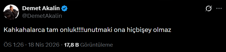 Akalın, ‘Kahkahalarca tam onluk! Unutma ki ona hiçbir şey olmaz’ yazdı.