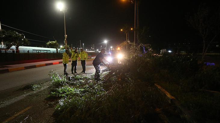 Belediye işçisi devrilen ağaç ve uçan çatıları kaldırmak için çalışma başlatırken, polis takımları kent genelinde güvenlik tedbiri aldı.