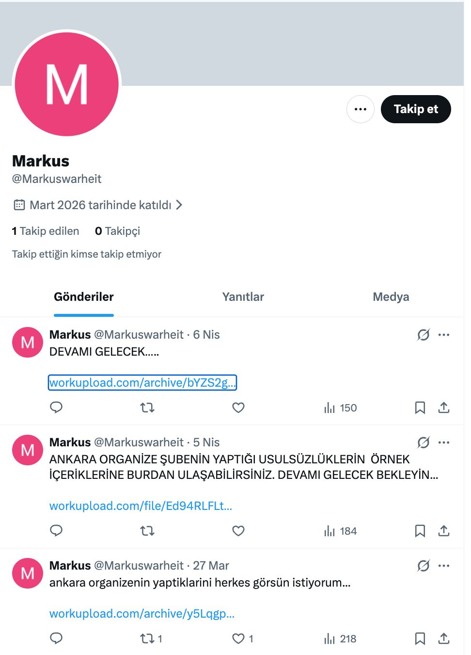 Hiç takipçisi olmayan ve yalnızca Emniyet’in saklı bilgilerini paylaşmak üzere açıldığı anlaşan hesaptan 27 Mart 2026, 5 Nisan 2026 ve 6 Nisan 2026 tarihlerinde yapılan üç farklı paylaşıma eklenen evrak uzantılarında, Emniyet Genel Müdürlüğü Kaçakçılık ve Organize Kabahatlerle Gayret Başkanlığı’na ilişkin kapalı bilgilerin bulunduğu tez edildi.