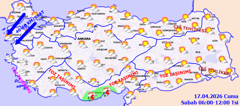 Öte yandan Türkiye’nin güney ve batı kesitlerinde toz taşınımı kestirim ediliyor.